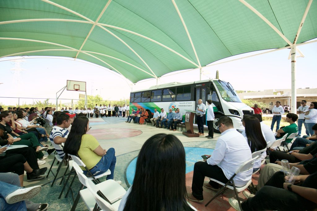 Posteriormente, Castro Cosío realizó la entrega de un autobús para el traslado de los estudiantes a sus viajes de prácticas, y para cumplir con los compromisos académicos, deportivos y culturales.
