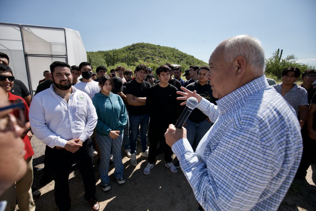 Durante este encuentro, el mandatario sudcaliforniano visitó el nuevo establecimiento de un invernadero que servirá para mejorar la preparación de los estudiantes de la carrera de Ingeniería en Agricultura Sustentable y Protegida.